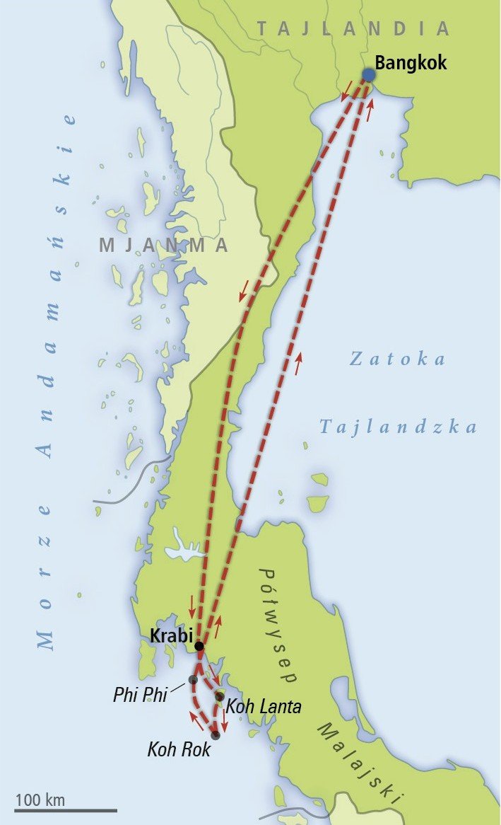 Pulsující Bangkok s rušnými uličkami plnými vůní koření a úchvatné, rájské ostrovy rozeseté na tyrkysových vodách Andamanského moře – tato cesta je esencí Thajska v tom nejlepším provedení! Během výletu navštívíte nejzajímavější místa hlavního města, v čele se Chrámy úsvitu a Zlatého Buddhy, projdete se barevnými trhy plnými rostlin a večerní jízda tuk-tuky spolu s ochutnávkou místních specialit přímo z pouličních stánků vás vtáhne do jedinečné atmosféry města, které nikdy nespí. Poté nastane čas na změnu scenerie – let na jih a pobyt na malebném ostrově Koh Lanta. V plánu jsou plavby na okolní ostrůvky, šnorchlování v křišťálově čistých vodách a odpočinek na plážích s pískem bílým jako mouka. Pro ty, kdo touží po ještě větších zážitcích, je připraven fakultativní výlet na Phi Phi – souostroví proslulé pohádkovými scenériemi, které je ideálním doplněním této exotické dobrodružné cesty.